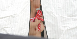 可愛い顔にワレメくっきりスケP&こぼれ出る豊乳がエロい!超接写尻からM字もじっくり清楚店員の卑猥パンチラたっぷりXX♡